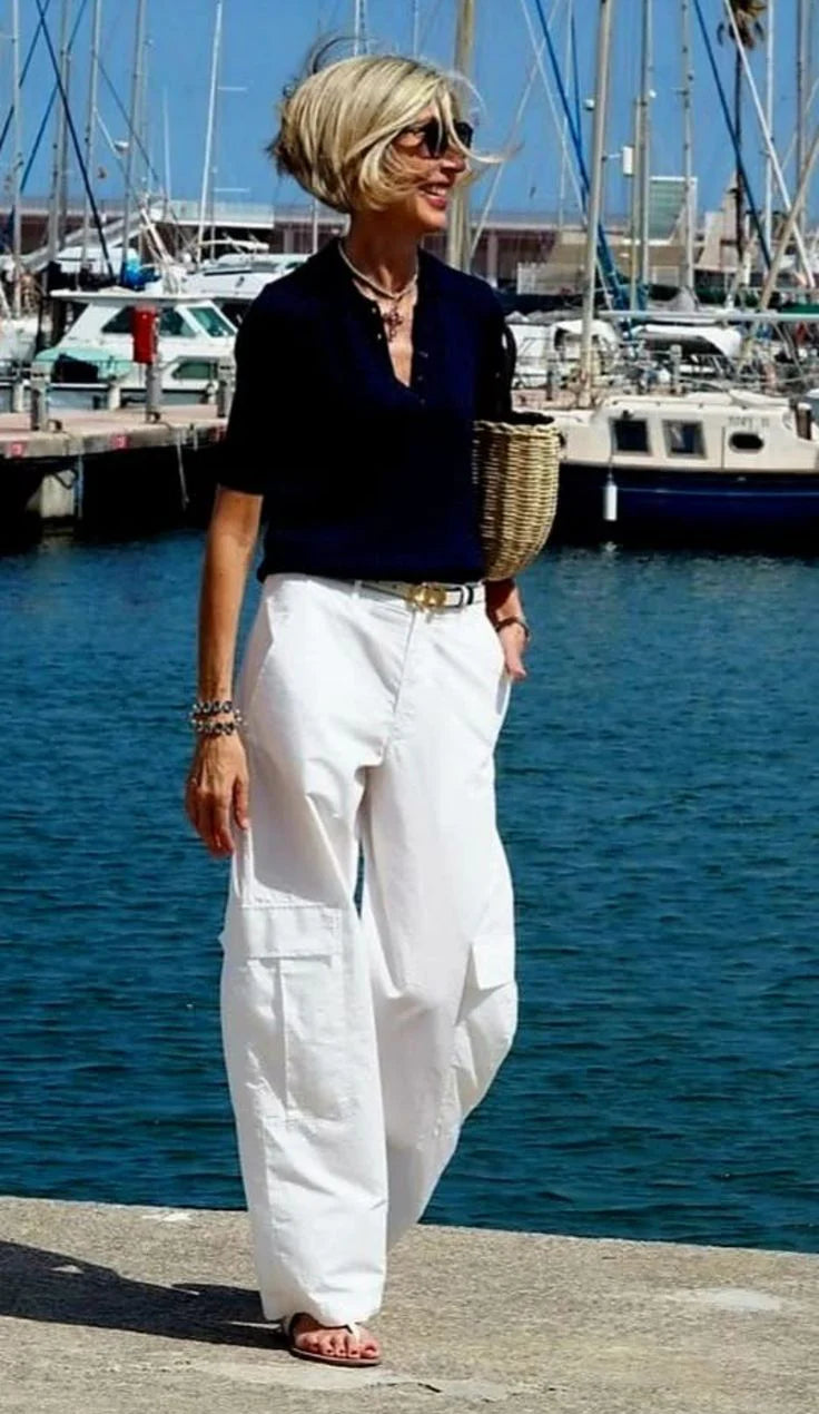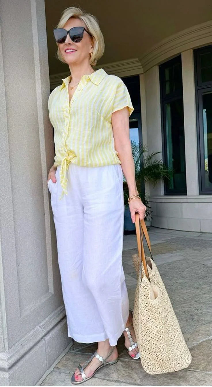 Vérène | Ensemble blanc fluide à détail lacet